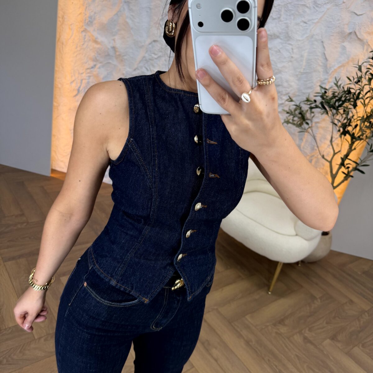 Denim elastični strukirani prsluk