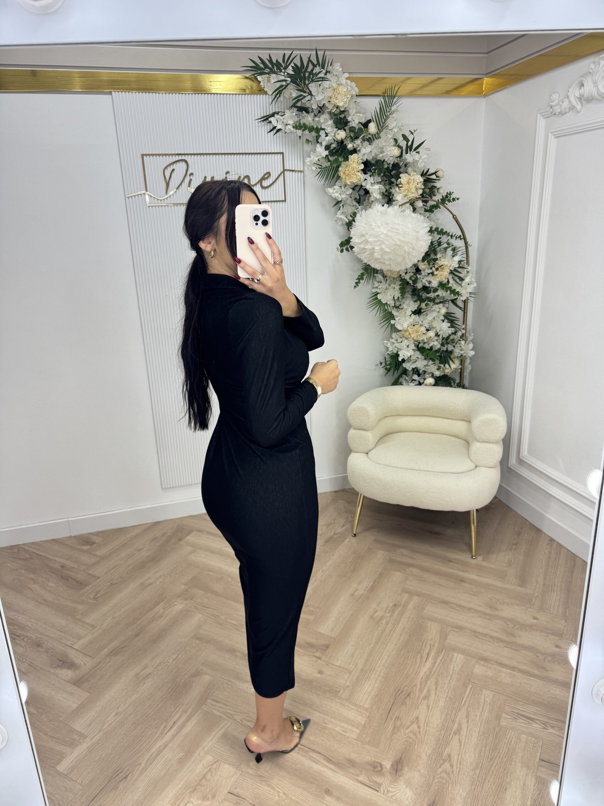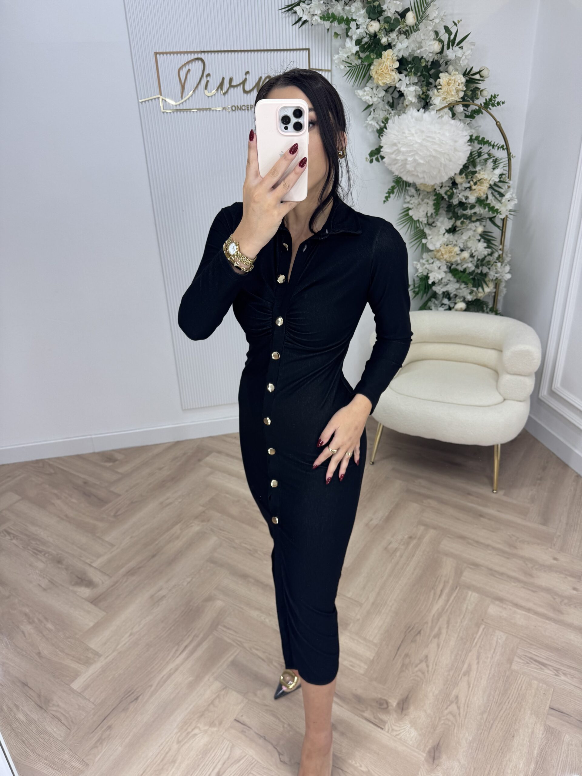 Haljina sa naborima i zlatnim detaljima BLACK