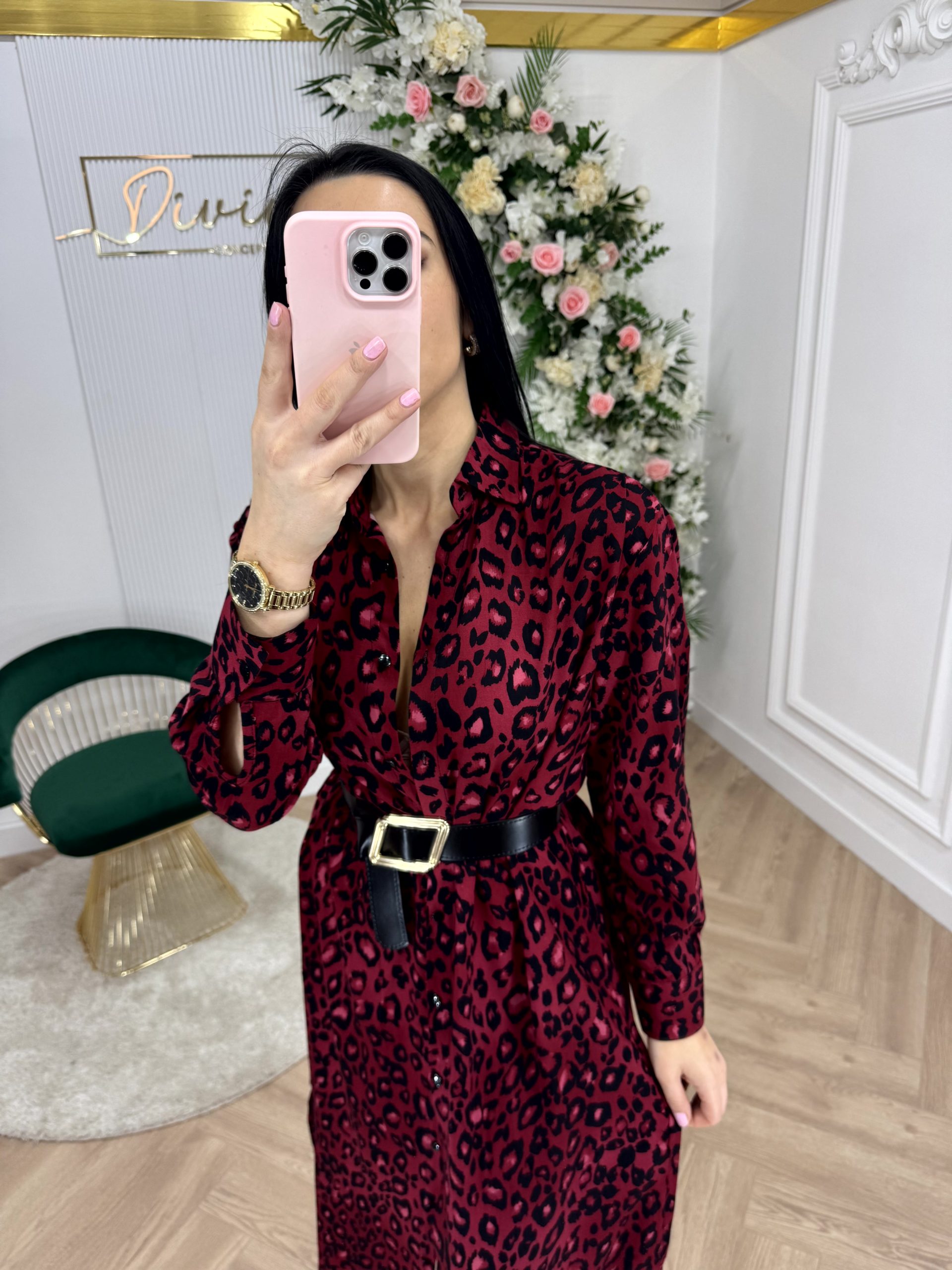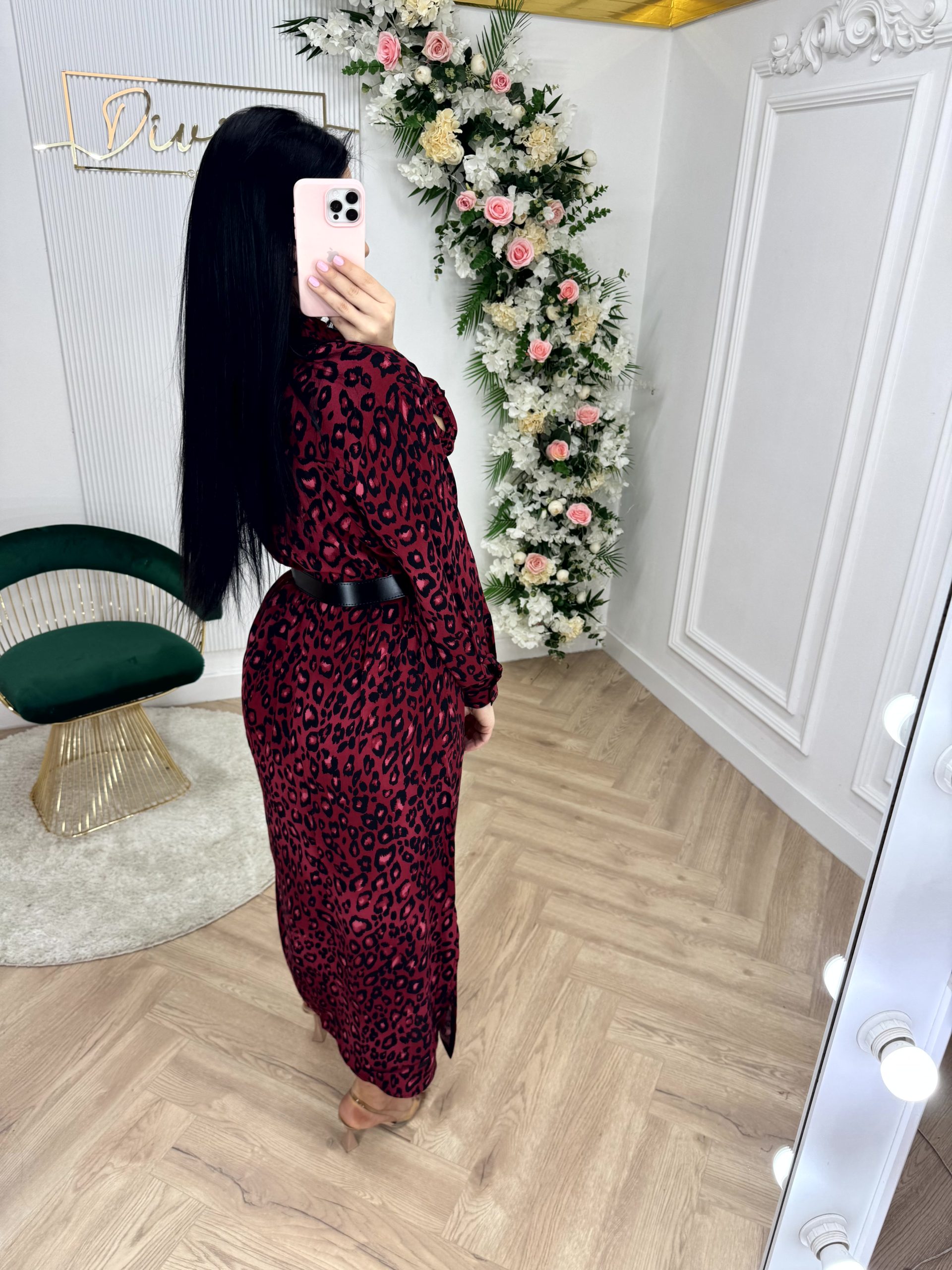 Midi lepršava haljina sa leopard uzorkom u zelenoj nijansi.
